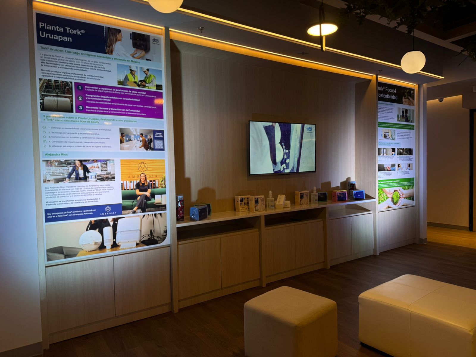 La firma destacó en su evento Museo Tork, que su planta en Uruapan, Michoacán, opera bajo una producción basada en economía circular, ayudada por un sistema de cogeneración que suma eficiencia energética y es único en Latinoamérica, ya que utiliza un 92% de fibras recicladas y también recicla el 66% del agua que consume.