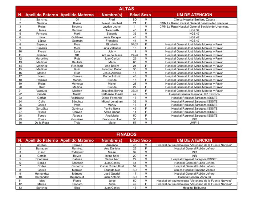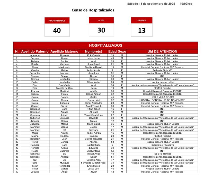 En su actualización, la dependencia capitalina detalló que, al momento, se reportan 40 personas hospitalizadas y 30 más dadas de alta.