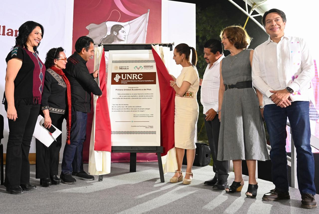 En Comitán de Domínguez, Chiapas, la presidenta Claudia Sheinbaum inauguró el primer plantel de la Universidad Rosario Castellanos fuera de la Ciudad de México, el cual tiene como objetivo ampliar las oportunidades de acceso a la educación superior en el sureste del país.