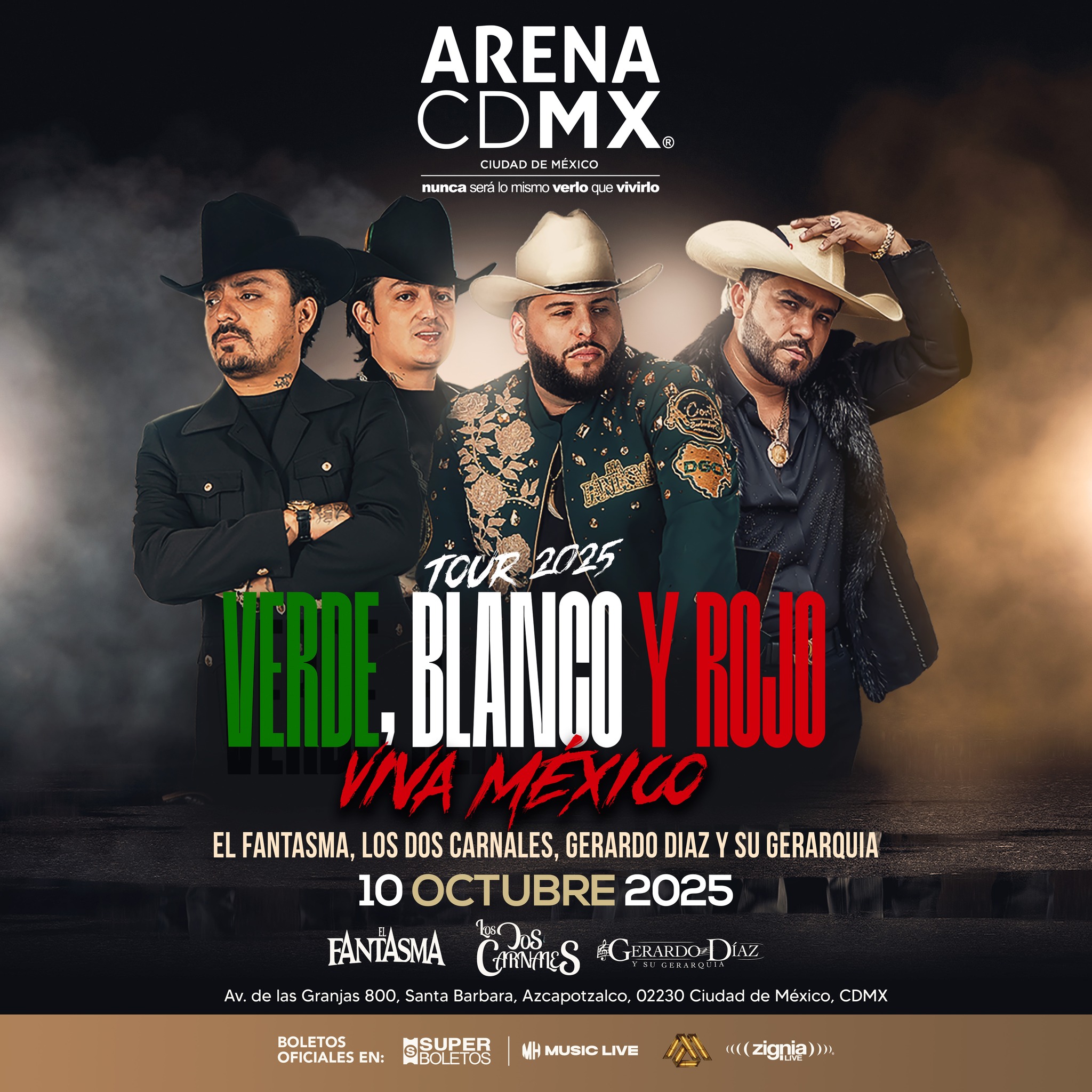 La Arena CDMX se prepara para teñirse de los colores de la bandera en una de las noches más esperadas del año. El próximo viernes 10 de octubre de 2025, tres titanes del regional mexicano se darán cita en el escenario más emblemático de la capital para encender una velada que promete quedar marcada en la memoria colectiva. Los Dos Carnales, El Fantasma y Gerardo Díaz y su Gerarquía unirán talentos en la gira “Verde, Blanco y Rojo ¡Viva México!”, un proyecto que no solo celebra la riqueza musical del país, sino también la fuerza de la unión en tiempos adversos.