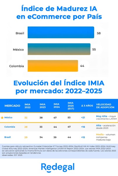 La inteligencia artificial ha dejado de ser una promesa tecnológica para convertirse en el motor de una transformación sin precedentes en el comercio electrónico de la región. Según el nuevo informe «Estado del Arte de la IA en eCommerce y Marketing Digital» de Redegal, Latinoamérica emerge como un gigante de adopción «consumer-first», con México y Brasil a la cabeza en el uso de herramientas generativas.