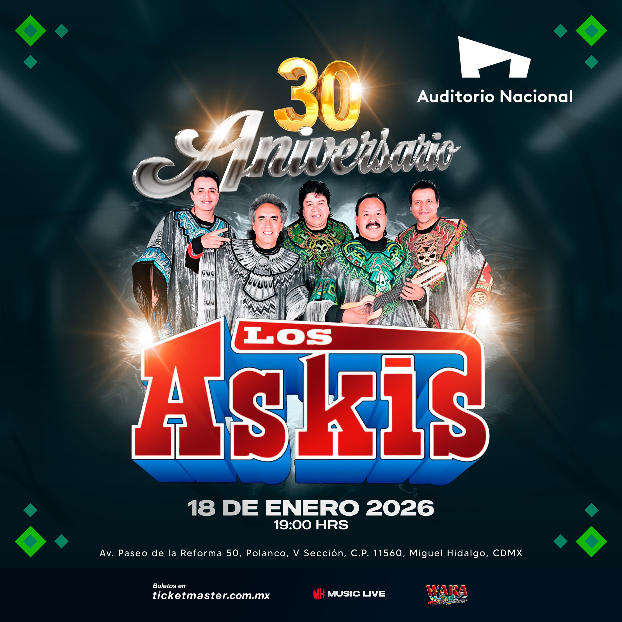 El próximo domingo 18 de enero de 2026 marcará un hito en la historia musical de México cuando Los Askis, el máximo exponente de la cumbia andina en el país, celebren su 30° aniversario con un magno concierto en el emblemático Auditorio Nacional de la Ciudad de México. El evento, programado para iniciar a las 19:00 horas, promete ser una noche llena de emociones, nostalgia y baile con los éxitos que han convertido a esta agrupación en referente indiscutible del género.