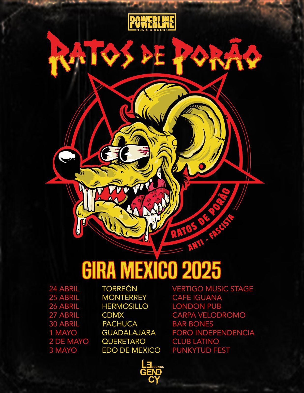 La escena underground mexicana está a punto de vibrar con la energía cruda de una de las bandas más legendarias del hardcore punk mundial. Los brasileños Ratos de Porão, con más de 40 años destrozando escenarios, anuncian su gira por México gracias a la gestión de Legendcy. Este tour histórico arrancará el 24 de abril en el Vértigo Music Stage de Torreón, seguido de un concierto el 25 de abril en el Café Iguana de Monterrey.