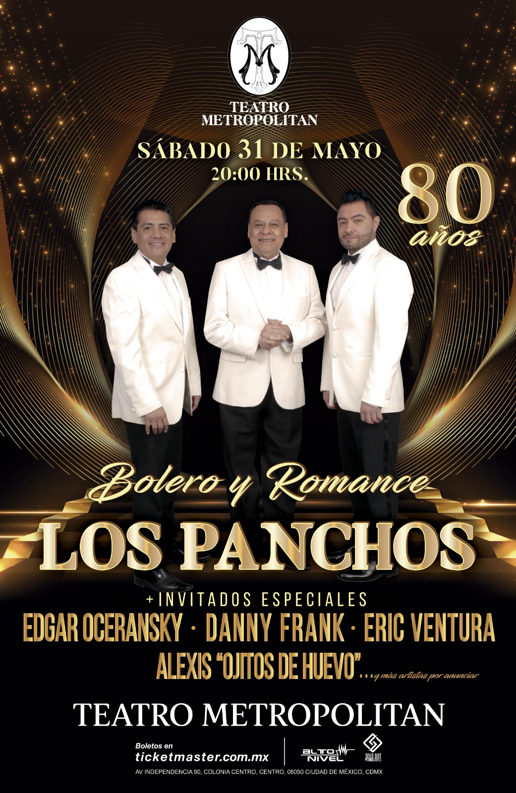 Este sábado 31 de mayo, a las ocho de la noche, el legendario trío Los Panchos se presentará en el majestuoso Teatro Metropolitan de la Ciudad de México para celebrar sus 80 años de trayectoria artística. Bajo el título “Bolero y Romance”, el concierto promete ser una velada llena de nostalgia, romanticismo y música inolvidable, en la que el público podrá disfrutar de los clásicos que han convertido a Los Panchos en un ícono de la música latinoamericana. Boletos a la venta en el Sistema Ticketmaster y en taquillas del inmueble.