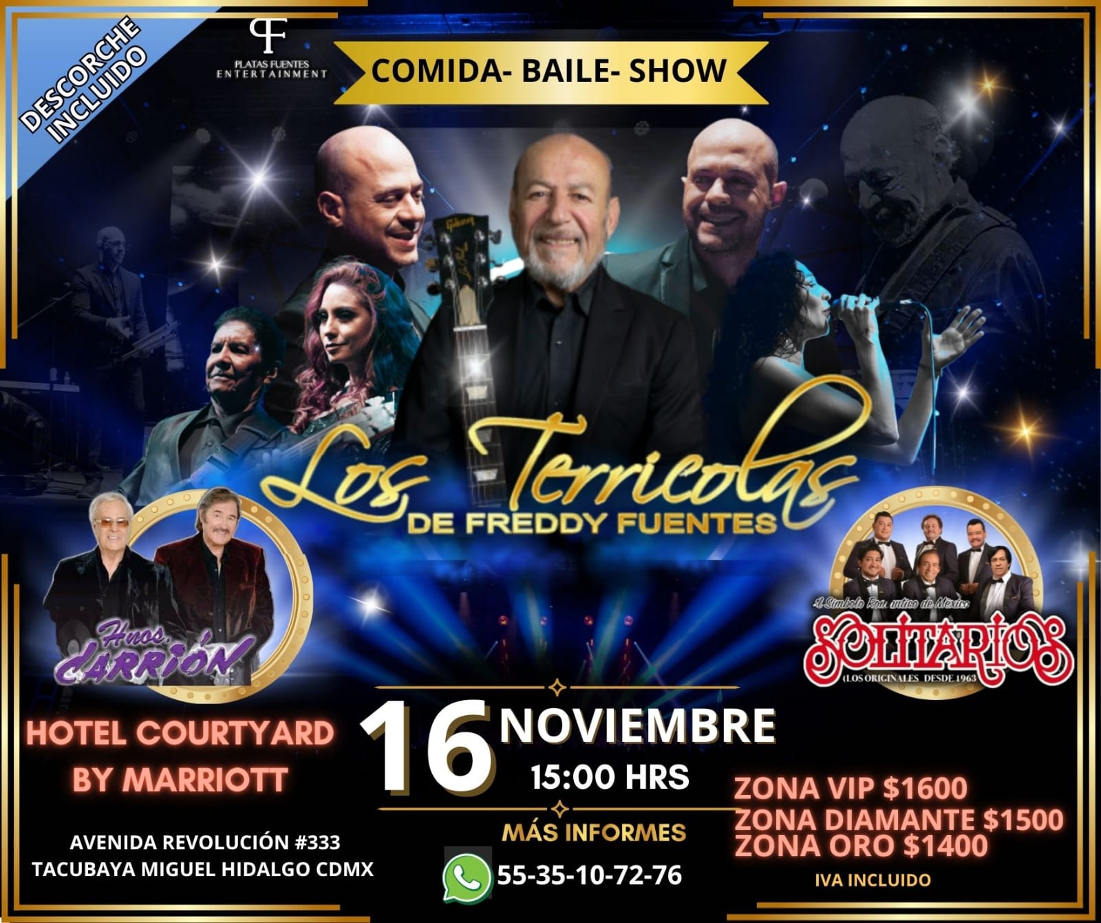El corazón romántico de toda una generación vuelve a latir con fuerza en la Ciudad de México. El sábado 16 de Noviembre, justo cuando la noche comience a pintar de nostalgia el cielo capitalino, el legendario grupo Los Terrícolas de Freddy Fuentes tomará el escenario del Hotel Courtyard by Marriot Tacubaya para regalar al público un concierto que promete ser mucho más que un repaso musical: será una ceremonia de memoria, de amor y de identidad. Será una noche en que los recuerdos no serán ecos lejanos, sino cantos vivos que volverán a habitar la garganta de miles de personas que alguna vez se enamoraron al compás de “Te juro que te amo” o “Llorarás”.