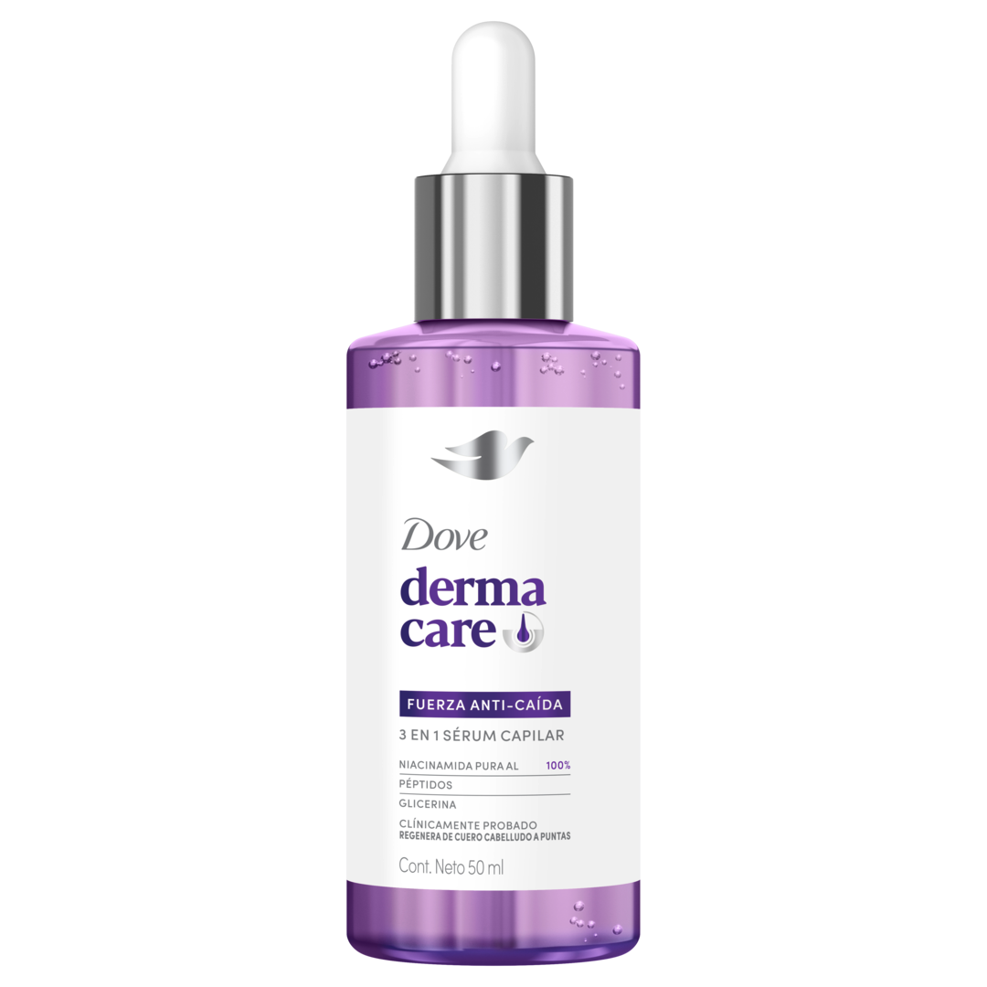 Dentro de esta línea destaca el Sérum Capilar Dove® Derma Care Fuerza Anti-Caída, un tratamiento avanzado de alta potencia que, gracias a su presentación en gotero, permite una aplicación precisa directamente en el cuero cabelludo.
