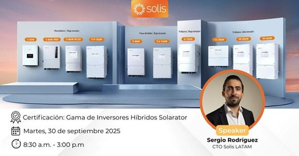 La certificación será impartida por Sergio Rodríguez, reconocido experto de la industria con más de 10 años de experiencia en el sector de la energía solar. Como Experto Técnico Principal para Latinoamérica en Solis, Sergio ha contribuido de manera significativa al desarrollo de soluciones avanzadas en inversores híbridos, impulsando la innovación y el fortalecimiento de capacidades en toda la región.