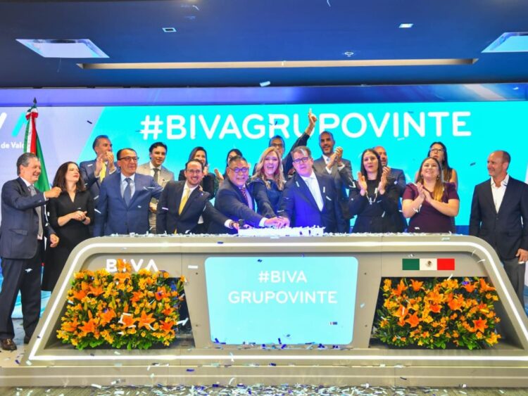 Ciudad de México, 12 de agosto de 2025. La desarrolladora de vivienda Vinte, llevó a cabo una colocación récord de bonos verdes, en la Bolsa Institucional de Valores (BIVA). AMEXI/Foto/Cortesía Vinte.